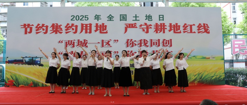 活动在开场舞《幸福中国一起走》中拉开帷幕,通过文艺演出与主题宣传的深度融合,生动诠释了守护土地资源、共建美好家园的理念。舞蹈《水韵江南》、歌曲《乡村振兴奔小康》《花开中国》等节目轮番上演,传递“节约集约用地,严守耕地红线”的庄严承诺。互动环节中,“全国土地日”知识及“两城一区”联创有奖问答引发热烈反响,观众踊跃参与答题。