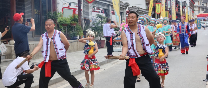 活动现场”八大碗”、腊鲍鱼、早酒等特色美食让游客大快朵颐;《抬工号子》《幸福山歌》等非遗歌舞轮番上演,特别是省级非遗项目薅草锣鼓《农耕秀》和下谷堂戏《楼台会》的原生态表演,赢得观众阵阵喝彩。在节目的最后,来自湖南的老年游客表演了《黄河大合唱》等节目,为节目助兴。开幕式当晚,东广场还举办了热烈的篝火晚会,游客与当地民众围着熊熊篝火跳起欢快的摆手舞,为活动画上圆满句号。