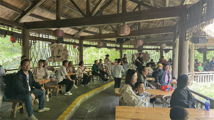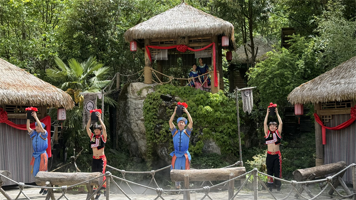 在精彩的表演结束后,工作人员还贴心地为游客们送上了当地特色酿造的白酒供游客品尝,将这份欢乐与热情进一步传递给每一位到访的客人。景区内,油坊、豆坊、酒坊等传统作坊也充满了节日氛围。油条、豆花、巴魂酒等特色美食香气四溢,搭配着优美的歌声,为游客们带来了一场视觉与味觉的盛宴。