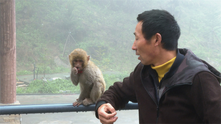 巡护途中,谭明宽依然如往常一样,认真履行护林职责。同时,他还耐心地教“猴健”采食野果、攀爬树木以及躲避天敌,为“猴健”将来能够顺利回归大自然做着准备。现在,“猴健”俨然成了谭明宽巡护路上的“小队员”,与他形影不离。