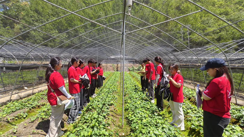 产业振兴是乡村发展的根本动力。带着“神农架林区如何平衡生态保护与经济发展”的问题,鸿鹄实践队将特色产业调研作为走访重点。在木鱼镇青天村、红坪镇红花村、松柏镇清泉村、阳日镇阳日村等地,队员们深入茶园、养殖场与种植基地,详细记录“茶旅融合”发展经验,近距离观察“五黑鸡繁育基地”的现代化养殖模式和林下天麻的蓬勃生长态势以及淫羊藿药材基地的标准化种植流程,全方位了解了神农架生态农业的产业全景。在实地考察劲牌神农架生态酒业和神农架天润生物科技有限责任公司等企业的过程中,队员们学习到了“企业+合作社+农户”模式如何打通产业链上下游,切实带动村民增收致富。如道地药材负责人在访谈中提到,“周围的农户只需要种好天麻原料,我们负责收购兜底,他们总是不会亏本的。”队员们深刻体会到了乡村产业对农民增收创收的支撑作用。