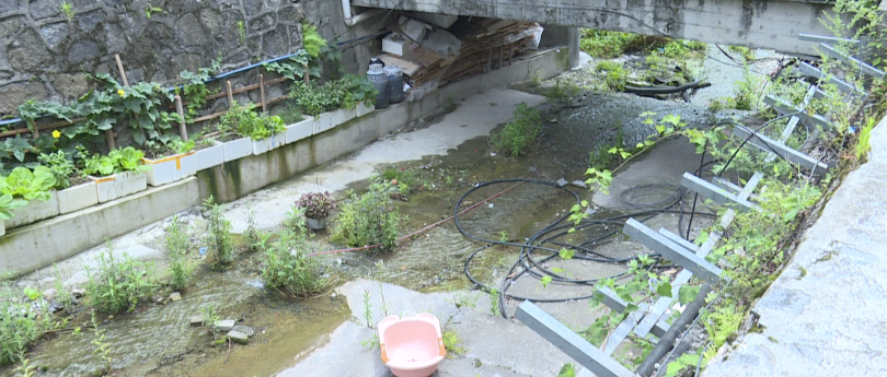 但在探访中也发现了一些不足之处:体育场部分健身器材的透明顶棚积满枯枝落叶,显然久未清理;附近公厕一处洗手龙头开关缺失,影响使用;张公路旁小河桥头下方,纸盒等废弃物堆积,一旁泡沫箱却种着蔬菜,景象略显违和。