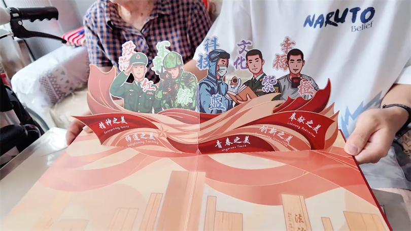 套盒内,除了录取通知书和入学报到凭证,一份立体书格外引人注目,生动呈现了国防科大的标志性景观,以“政治红、军事绿、科技蓝、文化紫、幸福橙”构成的校园文化,具象展现了这所顶尖军校的独特魅力。