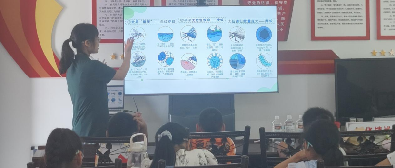 活动伊始,志愿者抛出“为何有些人总被蚊子‘偏爱’”的问题,随后通过图文演示揭秘:蚊子依靠感知二氧化碳、体温和气味锁定目标。“小孩子新陈代谢快,呼出的二氧化碳更多,成了蚊子的‘GPS定位器’。”衣物颜色也会受到影响。例如,穿黑、红等深色衣服会传递阴暗环境的信号,而穿白色衣物则相对安全。学生们恍然大悟:“原来防蚊要从穿衣、运动后清洁等细节做起!”