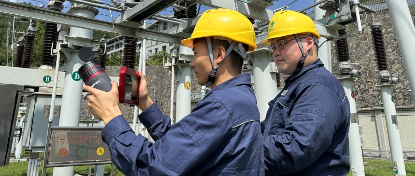 在变电站,技术人员携带红外测温仪,对变压器、断路器、隔离开关等关键设备的接线桩头、触头逐一测温并记录每一组数据,重点排查因高温可能引发的设备过热隐患。同时,他们关注设备运行声音和仪表指示等细节,确保及时发现并处理潜在问题。