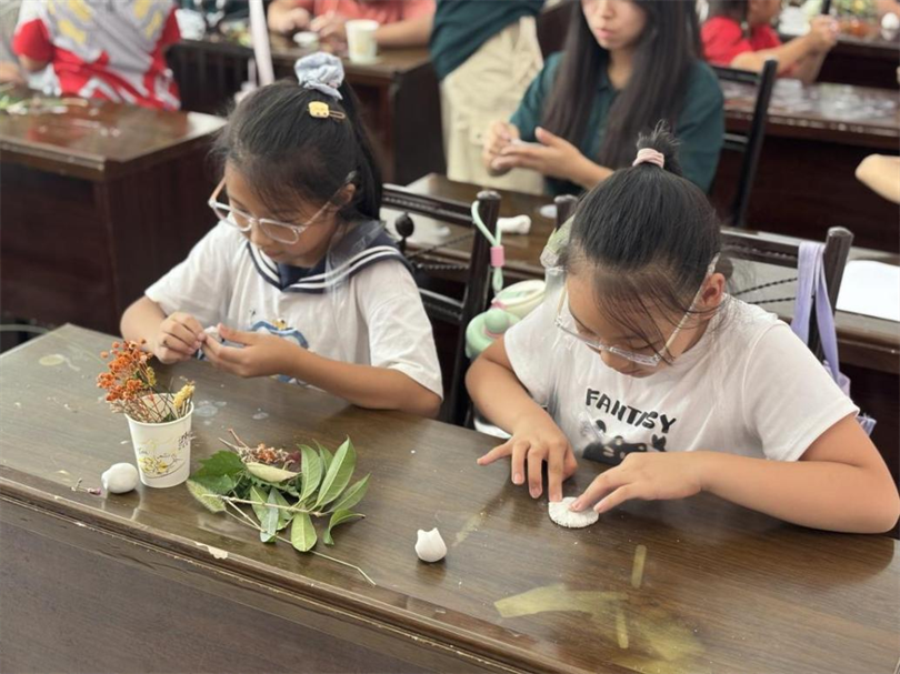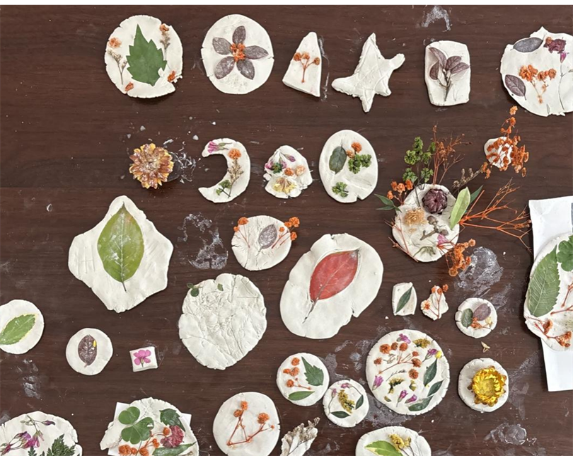 “三叶草化石,细叶脉都清晰印出来了!”一名女孩进行作品分享。黏土上的植物印记栩栩如生,仿佛封存了远古时光。课程结束,孩子们感慨:“摘叶子时没觉得特别,做成‘化石’才知每片叶子都是大自然的独特艺术品。”