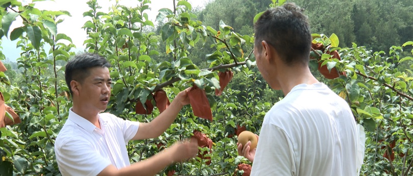 在推进350亩金果梨项目时,他同工作人员及产业致富带头人邹大伯通过院坝会认真讲解发展前景,力推“村集体+合作社+农户”模式,邀请“土专家”开展“理论+观摩+实操”管护培训,133名种植户技能显著提升。目前,金果梨已进入挂果期,当这片350亩的基地到达丰产期时预计增收260万元,这将成为阳日村集体经济及群众致富增收的新支柱。