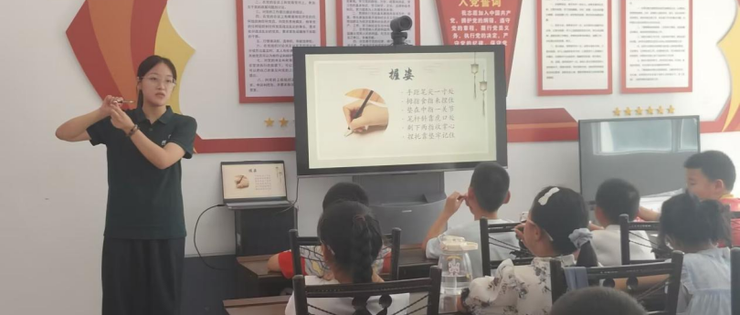 笔顺课程上,志愿者边示范边讲解:“头正身直如竹挺拔,握笔指实掌虚距尖一寸。”他们逐个纠正孩子歪头、耸肩等习惯,以“十”“人”为例强调“先横后竖”等规则,“笔顺对了,字才像站军姿的小战士”。