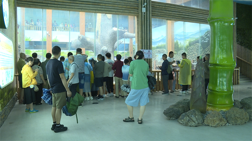 湖南常德游客肖笛带着两个孩子首次到访,她坦言看到大熊猫在馆内吃竹、嬉戏、翻滚的可爱模样,孩子们难掩兴奋之情:“能在神农架见到大熊猫,一家人都非常开心。”