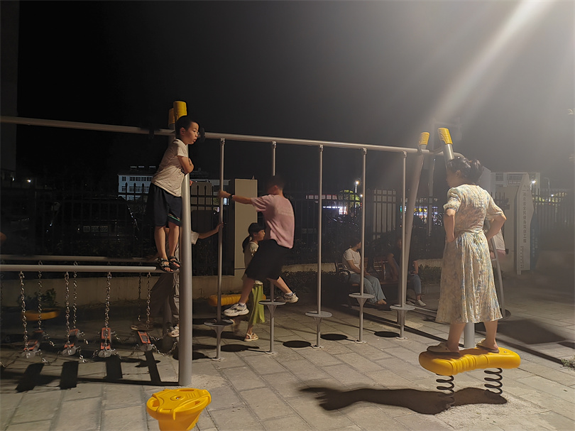 此次安装的设施兼顾健身与游乐需求,包括双杠、秋千、扭腰器、漫步机、上肢牵引器等健身器材,以及滑梯、铁索桥等儿童游乐设施。其中,铁索桥和滑梯备受儿童青睐,而双杠、扭腰器、漫步机等器材则更好地满足了中老年人的健身需求。