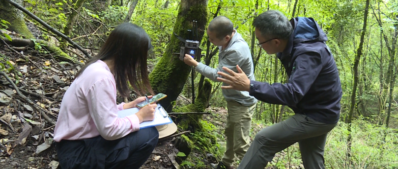 工作人员在野外安装、调试具备网络实时传输功能的红外相机