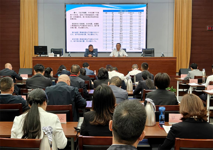 在授课过程中,明庭权教授详细回顾了习近平总书记历次考察湖北的足迹,并对习近平总书记在不同时期发表的重要讲话精神进行了深入解读。他希望全体学员牢记嘱托、感恩奋进,充分发挥自身优势,认真履行岗位职责,为湖北在长江经济带高质量发展中奋勇争先、加快建成中部地区崛起的重要战略支点、奋力谱写中国式现代化湖北篇章作出新的更大贡献。