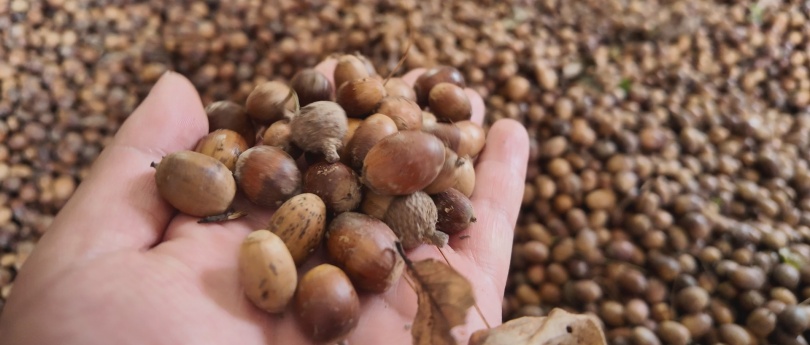 “今年雨水充沛,锐齿槲栎果实比往年更加饱满,但种子自然脱落期很短,必须抢在霜降前完成采收。”在海拔1600米的八茨线片区,红花朵林场工作人员韩天飞小心翼翼地将散落在地上的种子捡拾到一起。他介绍,严格遵循“选择性采收”原则,每棵母树仅采集部分果实,既够繁育用的种源,又不影响野生动物取食,还能让树木自然更新,不破坏生态平衡。