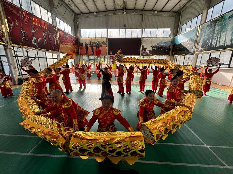 走进训练场,只见演员们正紧锣密鼓地进行排练。金龙腾飞、鼓点铿锵,一派昂扬景象。《梆鼓舞龙》导演龚少军介绍,节目创新性地融合了神农架传统梆鼓文化与中华龙文化,既展现了地方民族民俗特色,也体现了神农架人积极向上的精神风貌。