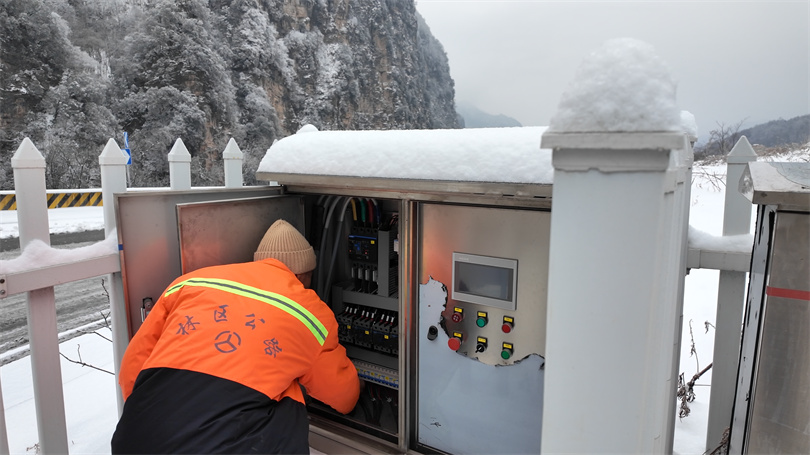 在松柏公路管理养护中心,工作人员及时启动茨八线道路融冰系统并进行全面检修,确保设施正常运行。针对部分积雪较厚、结冰严重的路段,养护人员采取机械与人工相结合的方式,使用撒布车撒布融雪剂,并配合铲雪车、扫雪车等设备进行循环作业。经过连续数小时的紧张作业,重点路段积雪基本清除,道路通行条件得到明显改善。