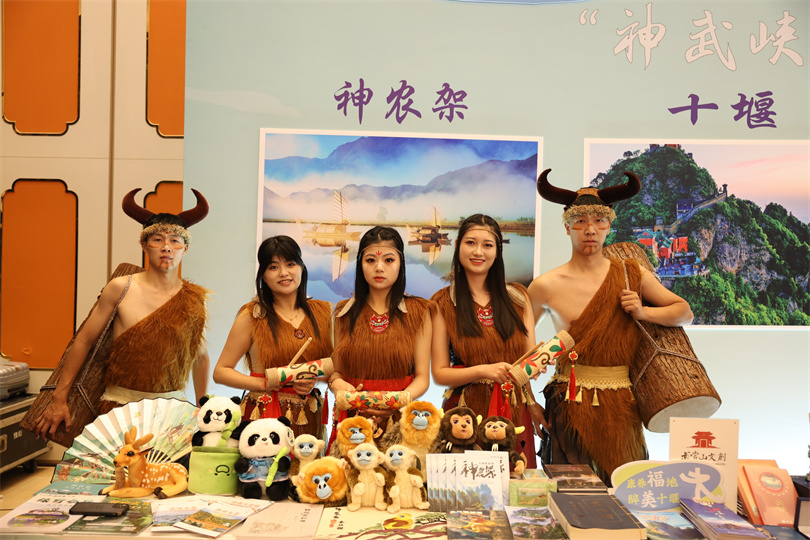 会场外场设置了展陈展示区和互动体验区,湖北相关市州携带宣传资料、文创产品以及特色文旅产品进行展出。神农架展台周围人群熙攘,气氛火热。神农架特色剪纸、刺绣等非遗产品,以及神旅集团带来的神农尚礼·啪啪圈系列公仔、金丝猴玩偶、金丝猴渔夫帽、猴头包等产品深受嘉宾和游客喜爱,吸引了众多参观者的目光。