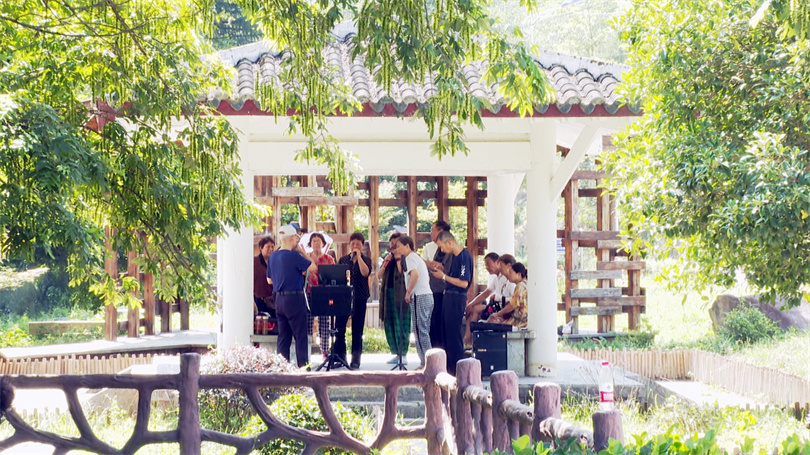 神农架林区融媒体中心(记者唐玉)登高避暑、山间纳凉、漫步田园、打卡景区……进入盛夏,大批游客逃离城市热浪,来神农架寻一片清凉。7月17日,记者在松柏镇八角庙村看到,来自襄阳的十几名游客正围在一起唱歌,热闹万分。