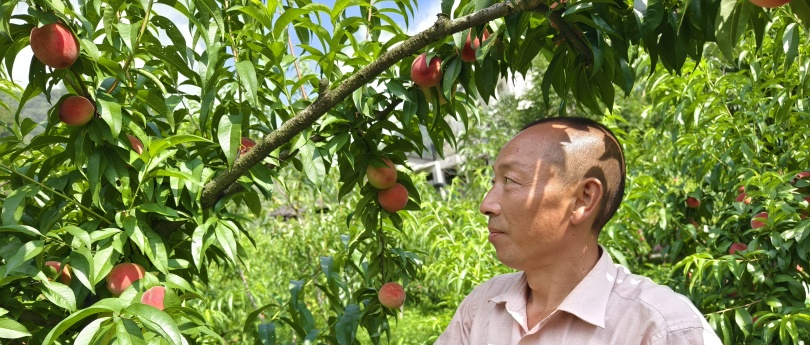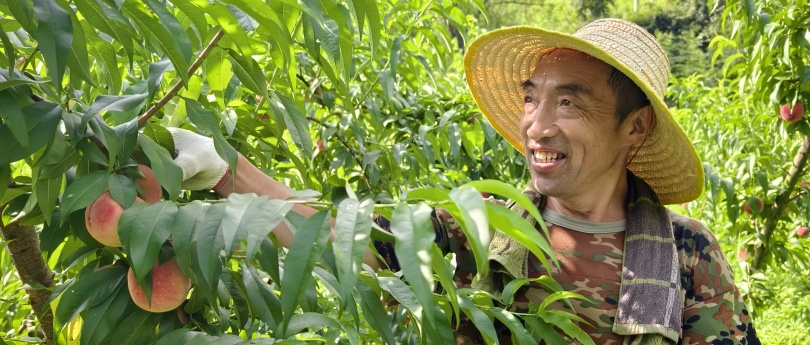 走进王大国的桃园,红彤彤的桃子挂满了枝头,果香袭人。王大国种植桃已有10多年,依靠多年的种植经验和精细管理,种植出的水蜜桃品质优良,水分足、口感好,今年产量超过万斤。