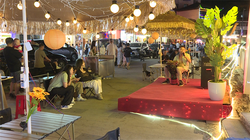 “这里的烧烤带着原生态的香味,特别对胃口!”正举着烤串的外地游客张林利笑着说,“吃饱了到歌台旁听一曲,晚风像天然空调,这体验非常好。”