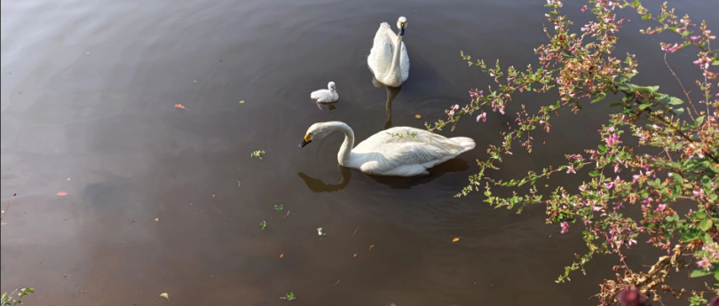 神农架林区融媒体中心(记者房泽洋 通讯员袁飞)近日,大九湖管理处湿地保护巡查队在例行工作中,惊喜地观测到两只成年小天鹅正带领着一只毛茸茸的幼雏在湖面游弋、嬉戏。