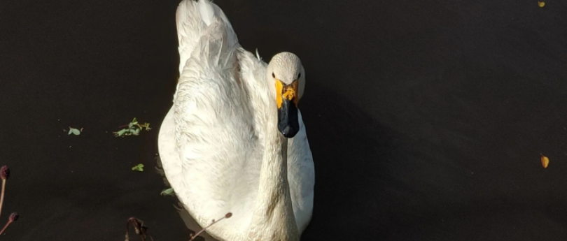 这只今年新孵化、绒毛如雪的小天鹅格外引人注目,它体态灵动,在父母的悉心守护下与同伴们一同学习划水觅食,为这片高山湿地注入了鲜活的生命力。