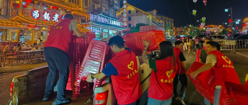 星河低垂,大九湖民谣季现场,点点“志愿红”仍在跃动。一个温暖瞬间被镜头捕捉,中心广场上,当宣传人员用无人机航拍散场场景时,镜头中突然出现数十位散场游客自发打开手机闪光灯,为仍在埋头清理场地的红马甲队伍照亮前路。