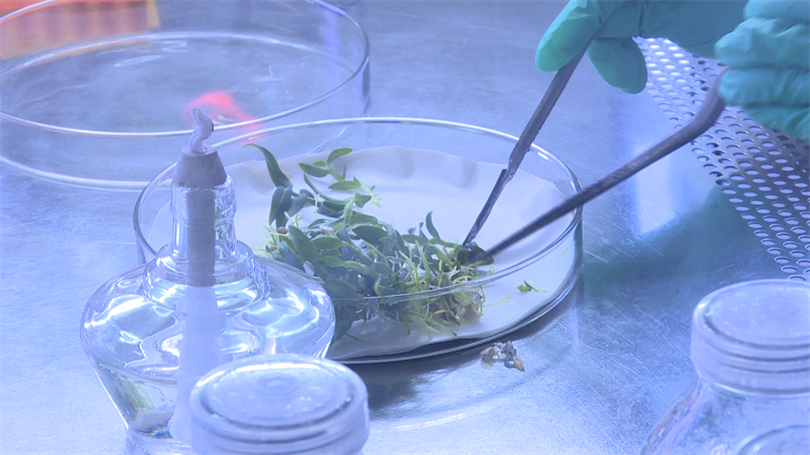 近日,记者在官门山实验室现场看到,工作人员正严谨有序进行石斛瓶苗移栽操作。每一株被选中的幼苗均根系强健、长势旺盛,经过严格的基质灭菌、根系消毒及适应性锻炼后方可入土。这项精细如绣花的工作,承载着物种延续的重托。