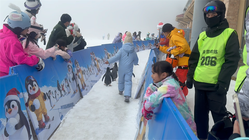 神农架林区融媒体中心(记者房泽洋 通讯员邓龙芹)近日,神农架国际滑雪场特开放企鹅主题巡游通道,邀现场小朋友与4只萌态可掬的企鹅近距离互动,共赴一场欢乐满满的雪地散步之旅。