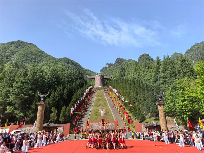 “鼓乐齐鸣,礼敬始祖”,神农坛景区内,省级非遗“炎帝祭祀”仪式庄重举行。作为“非遗过大年・民俗贺新春”活动的核心,景区每日举行两场祭拜仪式,邀请游客共同祭拜华夏始祖炎帝神农氏。晨雾缭绕中,游客们手持清香,在炎帝像前鞠躬祈福,庄重的仪式感中,传统文化的厚重底蕴扑面而来。