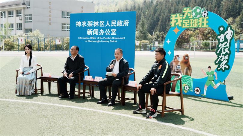 神农架林区融媒体中心(记者陈东东 唐玉 柯祎)4月9日,“玩转两个球场!2026‘楚超’神农架体旅融合”记者见面会在神农架林区实验初级中学体育场举行。青山环抱的绿茵场上,来自林区经济信息化和商务局、文化和旅游局以及此次联赛神农架足球队的相关负责人,向媒体介绍了本届足球联赛神农架赛区的筹备情况、场景打造、惠民政策及其背后的动人故事。