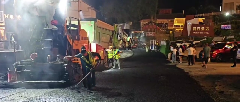 夜间抢铺沥青 神农架木鱼镇保暑期畅通